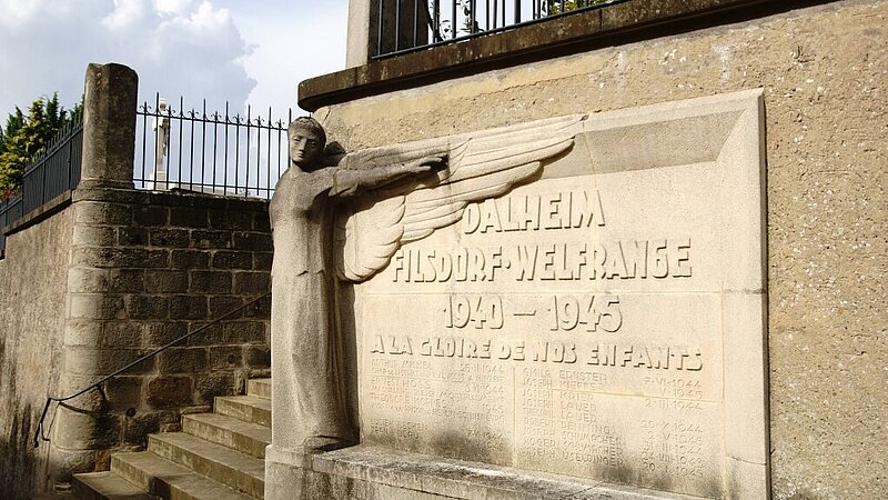 • sur un monument aux morts/une fenêtre commémorative et son histoire. (Des discussions avaient souvent lieu au préalable dans le village pour savoir si les noms des victimes devaient y figurer et lesquels, quel artiste devait être choisi, comment le monument serait financé...) ;