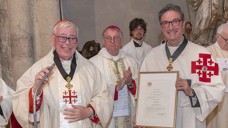 L’occasion est magnifique : le mardi 3 février, dans la co-cathédrale du Patriarcat Latin de Jérusalem, le chanoine Claude Bache va se voir remettre solennellement les insignes de chanoine honoraire de la basilique du Saint-Sépulcre, des mains de Sa Béatitude le cardinal Pierbattista Pizzaballa, patriarche latin de Jérusalem. Cet honneur, conféré pour la première fois à un ecclésiastique luxembourgeois, récompense le travail remarquable accompli depuis des années au service de la Terre Sainte.