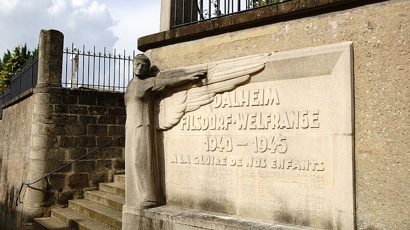 Schéckt eis och wgl. Fotoe vun de Monumenter, Erënnerungsstatuen a -fënsteren an Äre Kierchen.