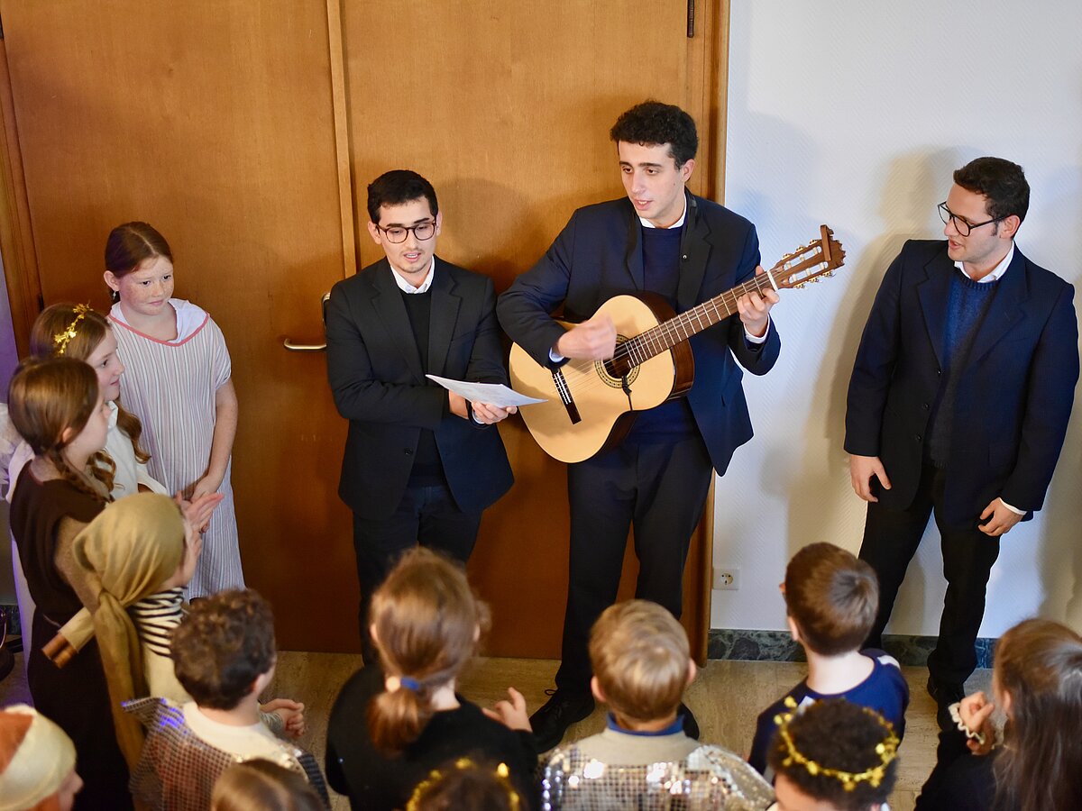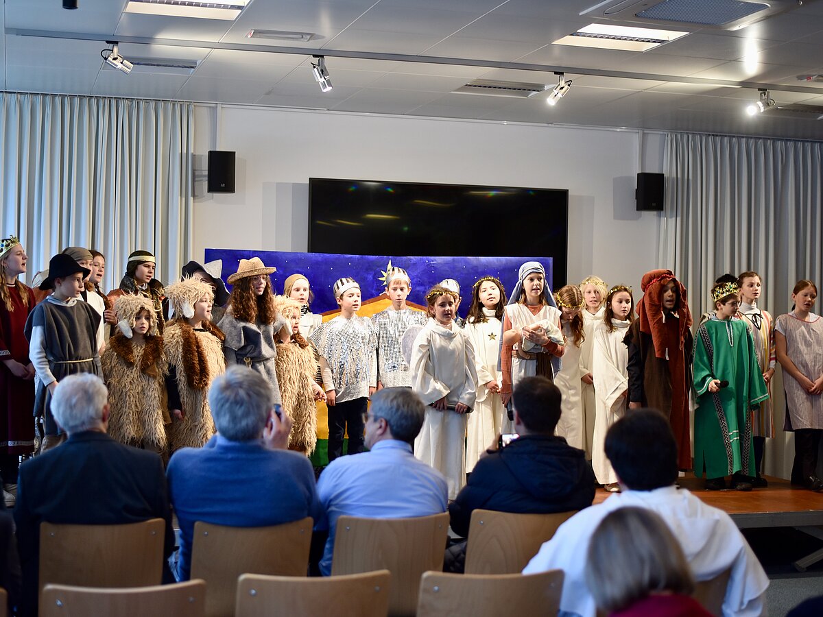 Après la représentation, acteurs et spectateurs se sont déplacés dans le hall du Centre Jean XXIII où les séminaristes ont présenté la crèche aménagée par leurs soins. Après quelques chants de Noël, Mgr Hollerich l’a bénie, ainsi que les enfants. Enfin c’est autour des tables que tous se sont retrouvés pour un repas festif préparé par les cuisiniers du Centre Jean XXIII.