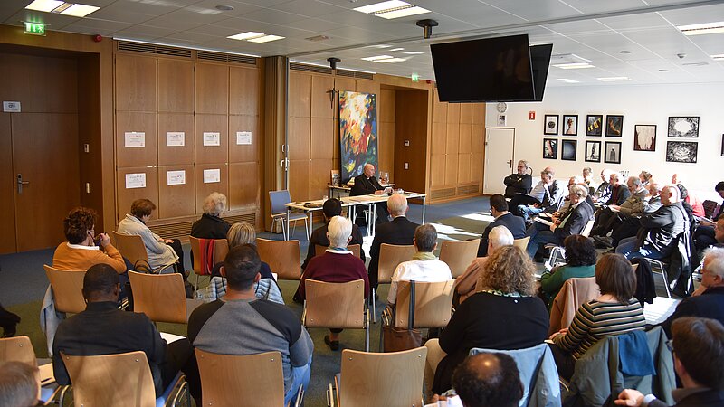 Durch seine empathische Art die Menschen wahrzunehmen und ihnen zuzuhören, nahm der Referent die Teilnehmenden mit auf den Weg der Synodalität, den es jetzt in der 3. Phase der Synode zu vertiefen gilt. Er berichtete von seinen eigenen Erfahrungen als Bischof mit dem Synodengeschehen in Rom und von einem Weg der Umkehr, den er selbst als Hirte, gehen musste. Hier wurde das „Gespräch im Geist“ für ihn zum Schlüsselprinzip in einer Kirche die unwillkürlich vor entscheidenden Herausforderungen und großen Fragen steht. Das synodale Gespräch wurde für ihn zu einem offenen Tor, durch das alle eingeladen sind auf den Geist zu hören und in einen Prozess zu treten.