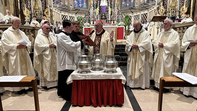 Le cardinal Jean-Claude Hollerich, Archevêque de Luxembourg, invite tous les fidèles à la messe chrismale le mercredi 1er avril 2026 à 18 heures 30 en la cathédrale Notre-Dame de Luxembourg. Au cours de cette célébration pontificale les saintes huiles – Saint Chrême, huile des catéchumènes et huile des malades – sont consacrée (pour le Saint Chrême) ou bénites. Elles sont le signe de la bonté et de la miséricorde divine auxquelles les croyants ont part en recevant les sacrements de l’Église.
