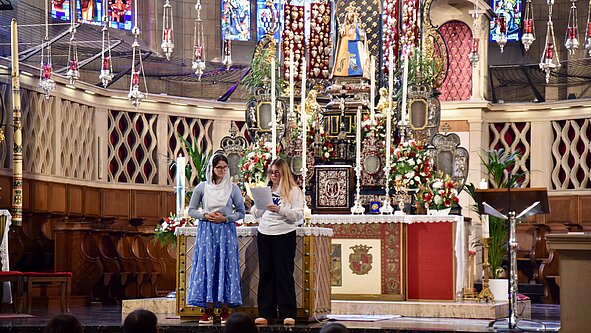 Dieser erste Sonntag der Oktave klang sanft aus mit einer Gebetswache, die von den Gruppen junger Erwachsener aus Bonneweg geleitet wurde. Diese Abende der Oktave sind wahre Schätze. Das Abendlicht, das durch die Buntglasfenster fällt, die gedämpfte Beleuchtung im Chor der Kathedrale, der Votivaltar, dessen Herzen leuchten – all dies trägt dazu bei, die Seelen zu öffnen und regt zum meditativen Gebet an. Lieder an die Jungfrau Maria, Rosenkranzgebet und Anbetungslieder wechselten sich ab, wobei der Schwerpunkt auf dem Gebet für den Frieden lag, wie es Papst Leo XIV. gefordert hatte.