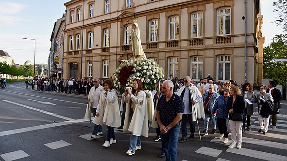 Le cortège des lusophones, derrière la statue de Notre-Dame de Fatima, a bloqué la circulation sur le vieux pont pendant de longues minutes, au son des Ave Maria. Comme chaque année, les fidèles ont été accueillis dans la cathédrale par le cardinal Jean-Claude Hollerich qui a ouvert la célébration en portugais.