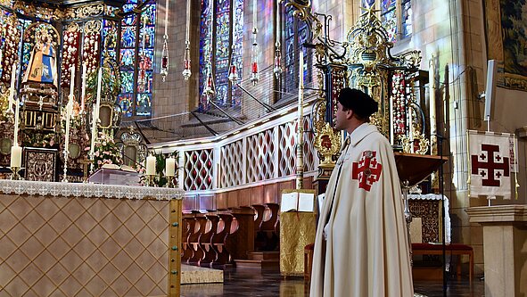La messe de huit heures a été célébrée par le cardinal Jean-Claude Hollerich, Grand-Prieur de l’Ordre du Saint-Sépulcre de Jérusalem (OESSH), pour les chevaliers et dames de cet Ordre. La croix de Jérusalem, brodée sur leurs manteaux, doit nous alerter, comme un signe de l’importance que doit revêtir pour nous la Terre sainte.