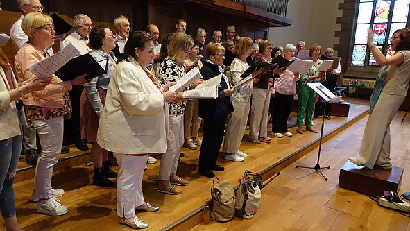Die Chöre der Pfarreien Rammerech Saint-Valentin und Atertdall Sainte-Claire sangen heute Abend bei der Messe in der Kathedrale unter der Leitung von Claire Garçon-Wio, begleitet an der Orgel von Pol Wio.