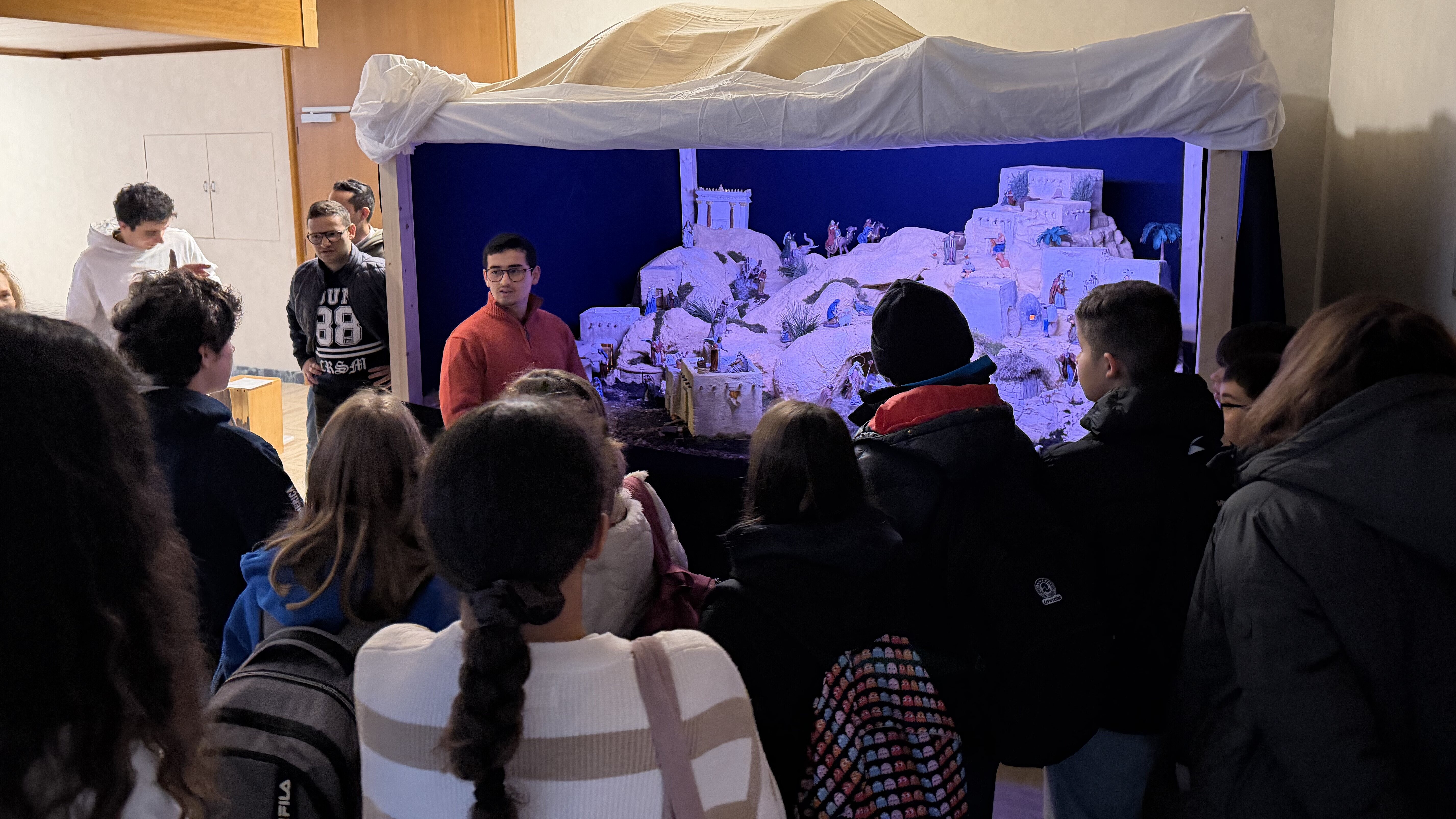 Sur place, les séminaristes ont présenté la grande crèche, qui illustre les principaux épisodes de la vie de Jésus avant et après sa naissance, sur la base de l’évangile selon saint Luc. Les élèves ont suivi avec attention les explications et ont eu l’occasion de poser des questions.