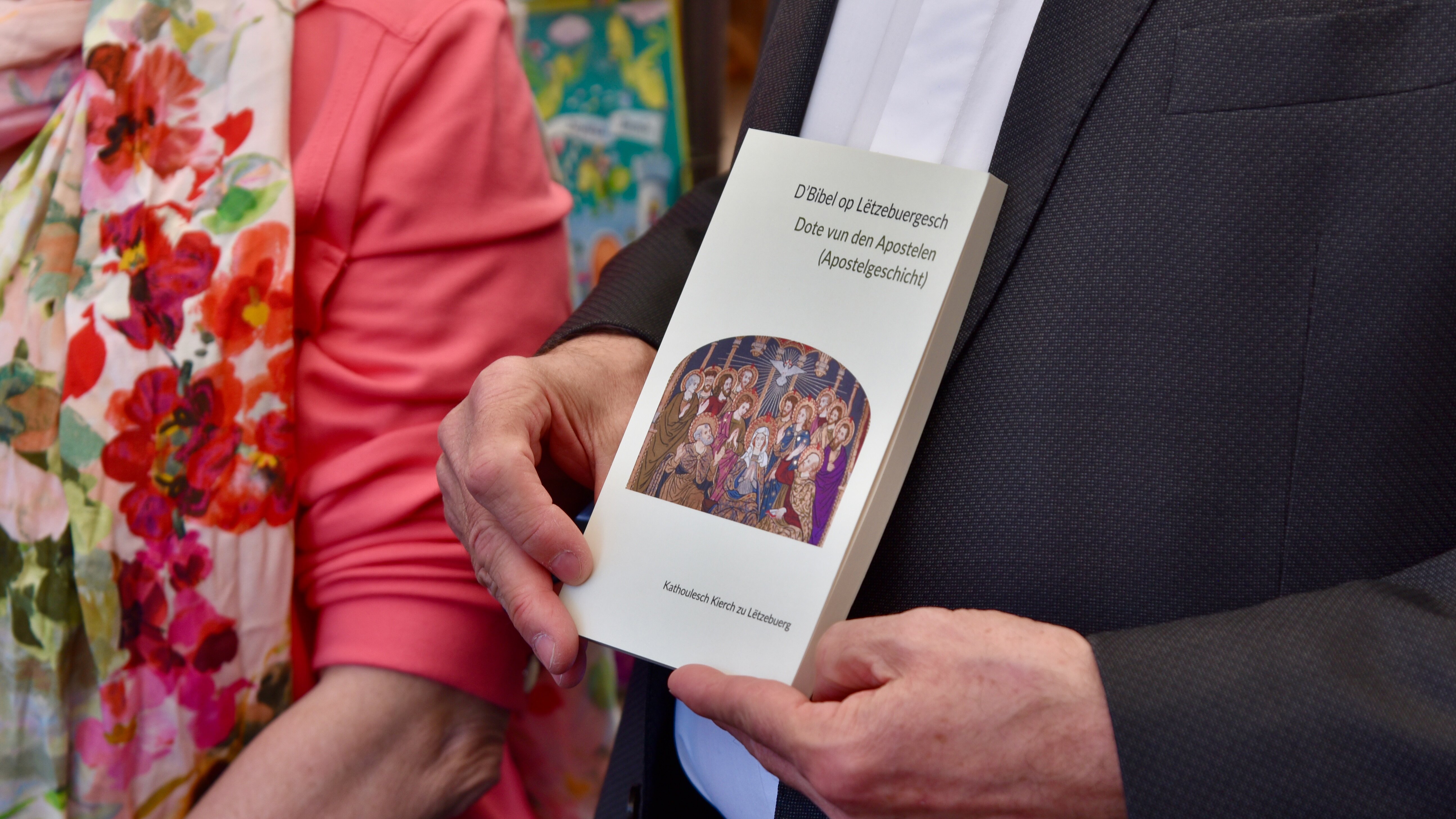 Den éischten Optrag vum AG war en Evangeliar fir d’liturgesch Joren A, B, C, d’Fester vun den Hellegen an d’Oktavzäit; dës éischt offiziell Iwwersetzung gouf räich illustréiert mat Biller vum Jean-Marie Biwer. Dono goufen noeneen déi 4 Evangelien am Ganze publizéiert, ier se, iwwerschafft an der Orthographie-Reform vun 2019 ugepasst, an engem Buch editéiert goufen. Well allgemeng d’”Apostelgeschicht”, also d’”Dote vun den Apostelen” als Fortsetzung vum Lukas-Evangelium ugesi ginn, waren dunn si un der Rei.