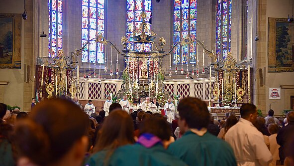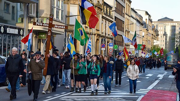 "Nous sommes ici le peuple des baptisés, le peuple de Dieu, a prêché le cardinal Jean-Claude Hollerich, archevêque de Luxembourg. Pour cela il n’y a pas de passeport, mais la carte d’entrée au Ciel c’est le certificat de baptême." L'évangile du jour, qui évoque le Christ Bon Pasteur, raconte que les brebis vont quitter le bercail à la suite de leur Berger. "Nous, les brebis, nous sommes invités à être avec Lui et tout de suite Il nous fait sortir. Et cet envoi c'est notre mission parce que l'Église synodale c'est une église en mission. (...) Mission cela veut dire proclamer que Jésus est mort et qu'Il est vivant pour nous. (...) Nous devons être un peuple de paix."