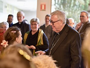 Après la représentation, acteurs et spectateurs se sont déplacés dans le hall du Centre Jean XXIII où les séminaristes ont présenté la crèche aménagée par leurs soins. Après quelques chants de Noël, Mgr Hollerich l’a bénie, ainsi que les enfants. Enfin c’est autour des tables que tous se sont retrouvés pour un repas festif préparé par les cuisiniers du Centre Jean XXIII.