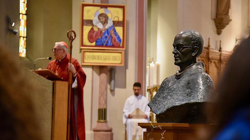 Après une messe en ornements rouges, couleur du martyr vécu par le père Kolbe, un buste en bronze du Saint a été béni par l’archevêque de Luxembourg : « J’ai été frappé, au moment de bénir ce buste, de ce qu’il est tout à fait réaliste. On voit l’humanité de saint Maximilien. C’était quelqu’un comme nous, avec une expérience humaine, mais il a su donner sa vie. »